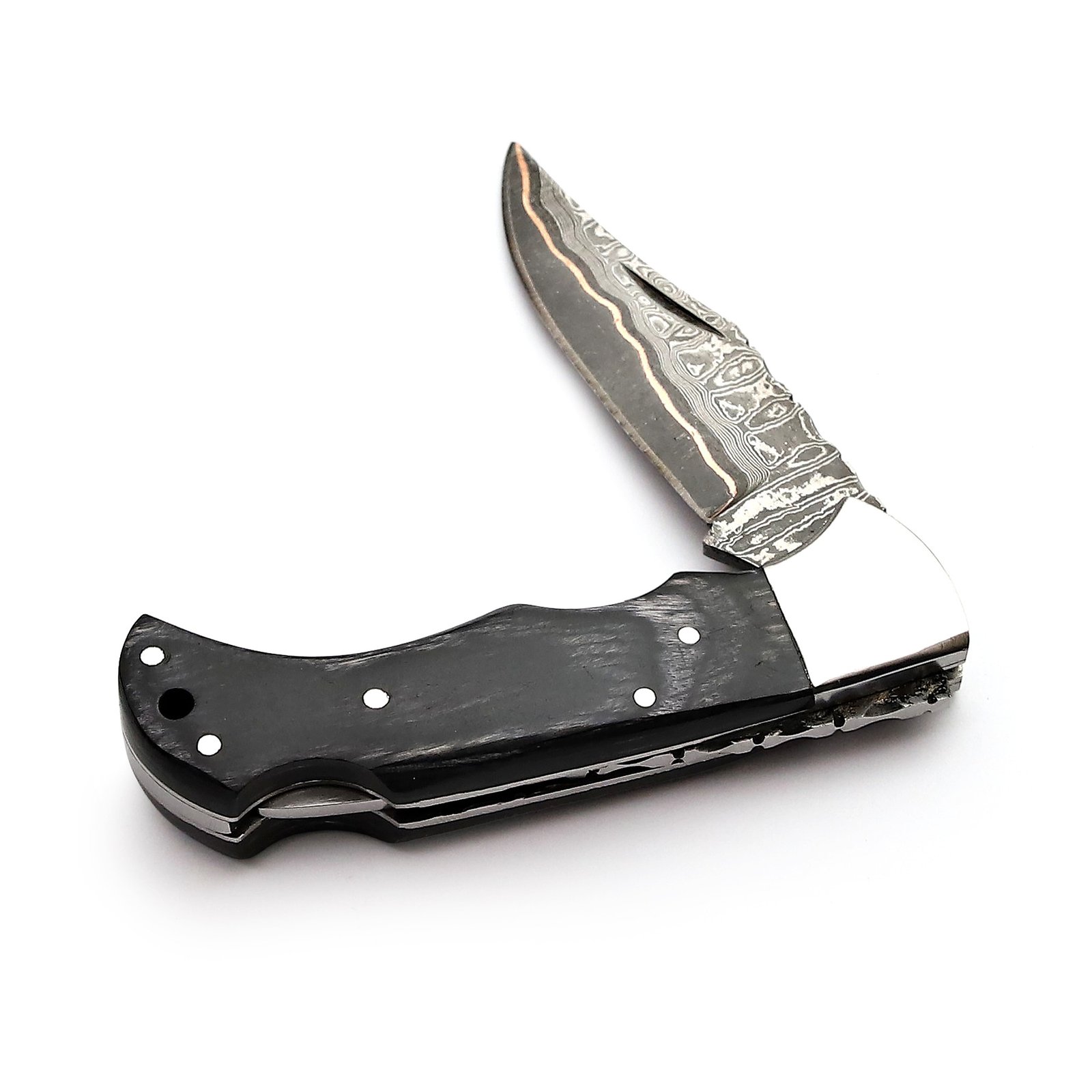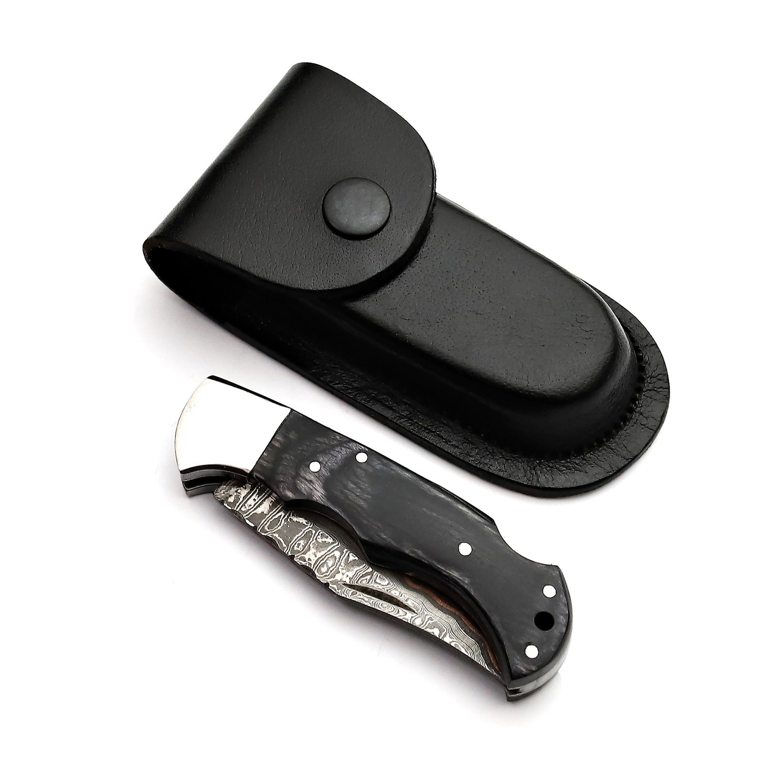 GK-023A Pocket Knife, Couper Damascus Blade, Pekka wood Grey