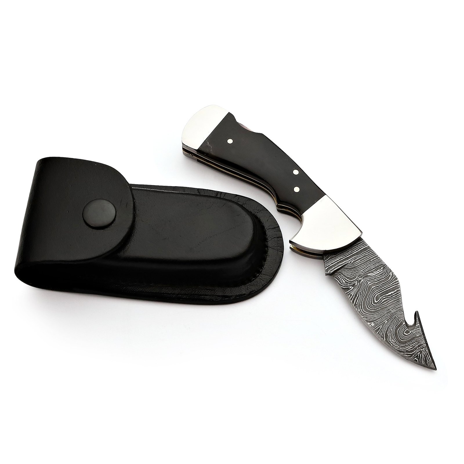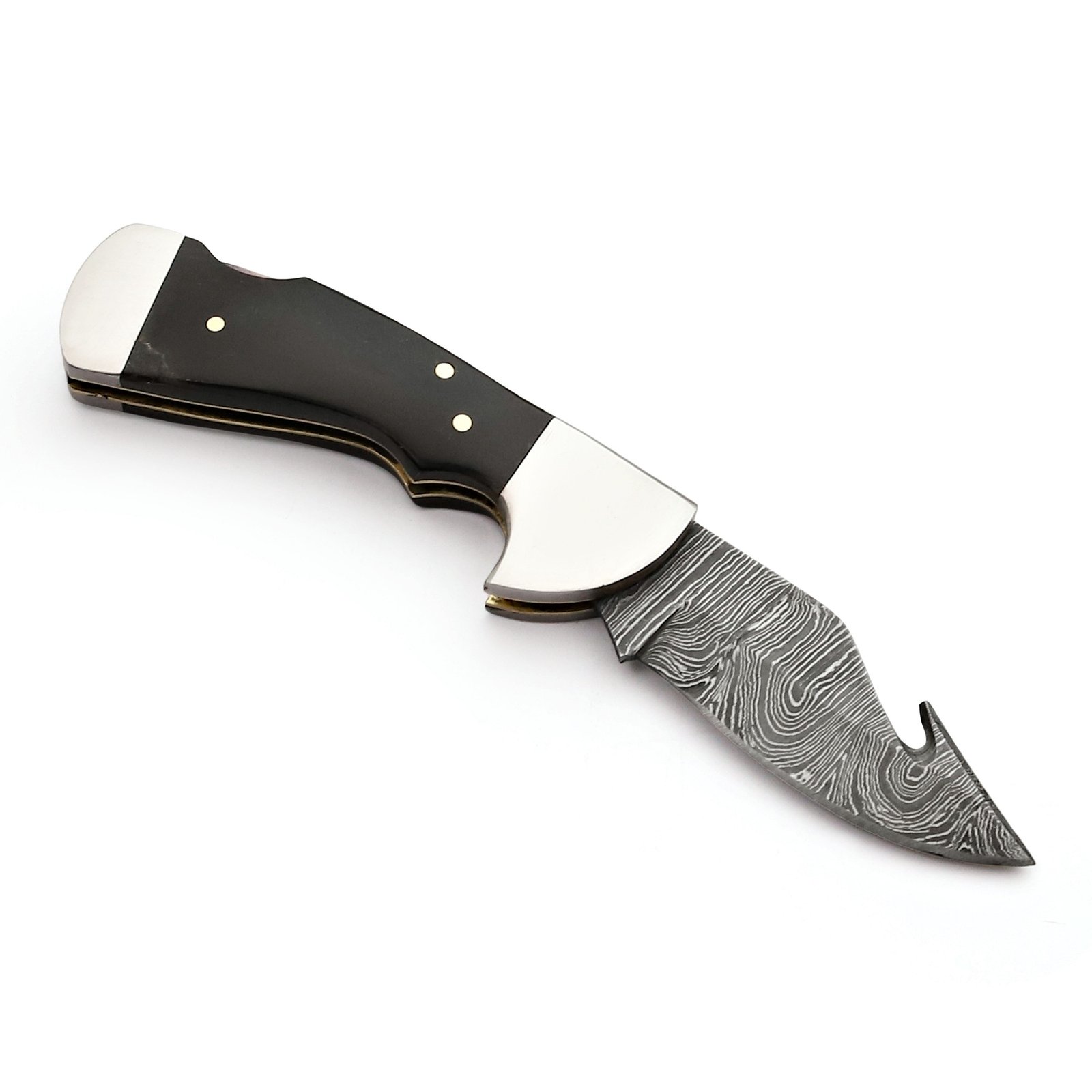 GK-046A Pocket Knife Damascuss Blade, Buffalow Horn Handle