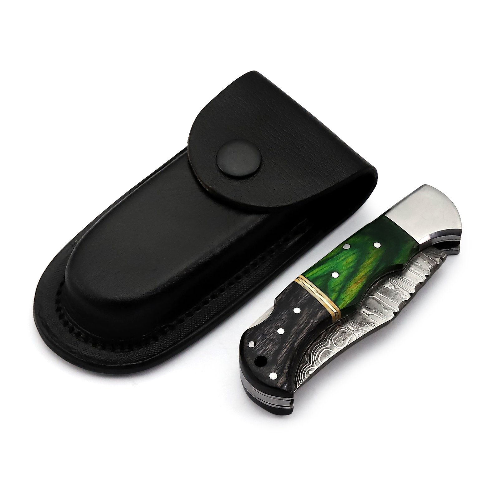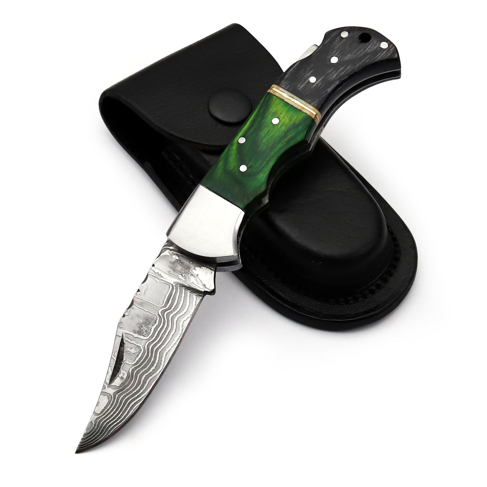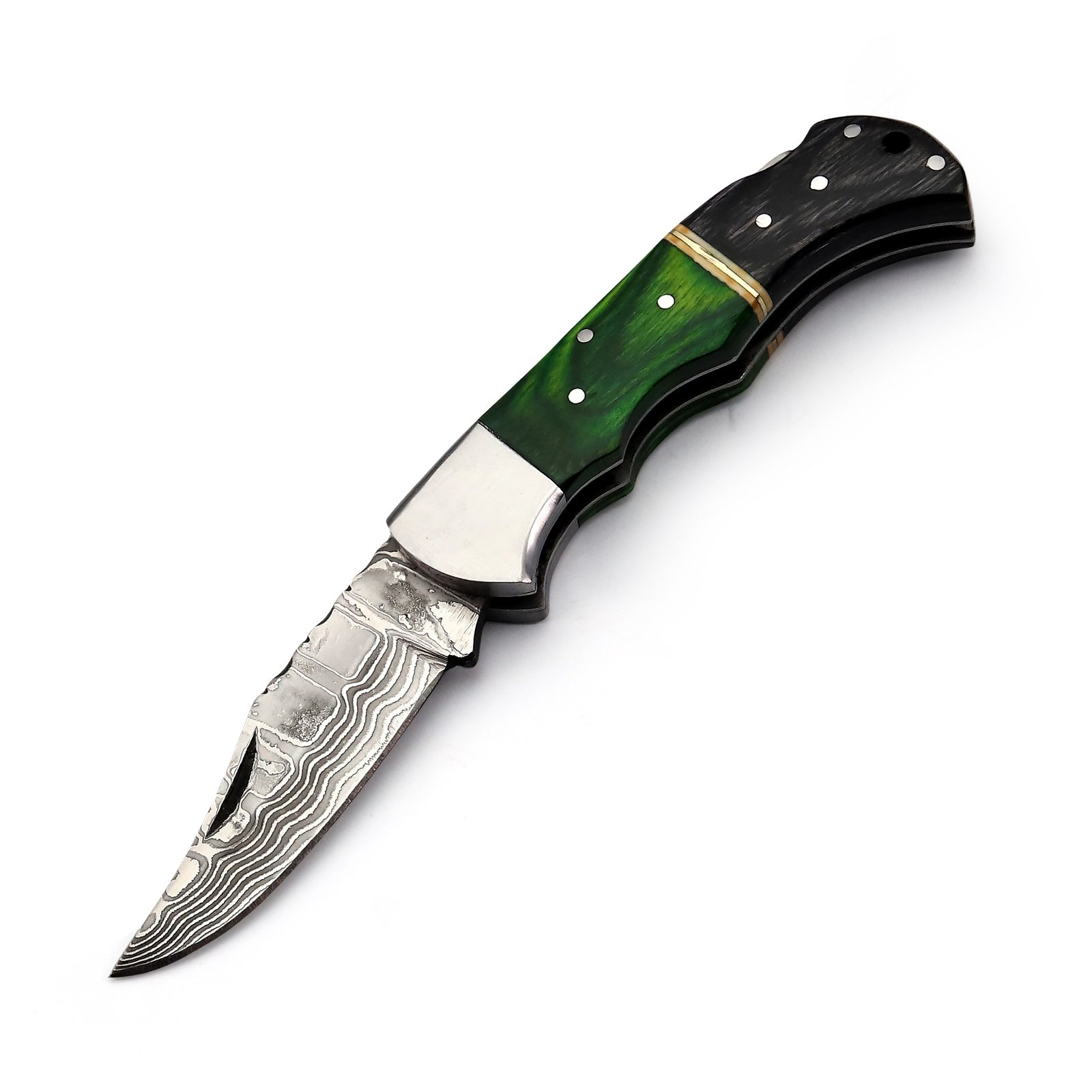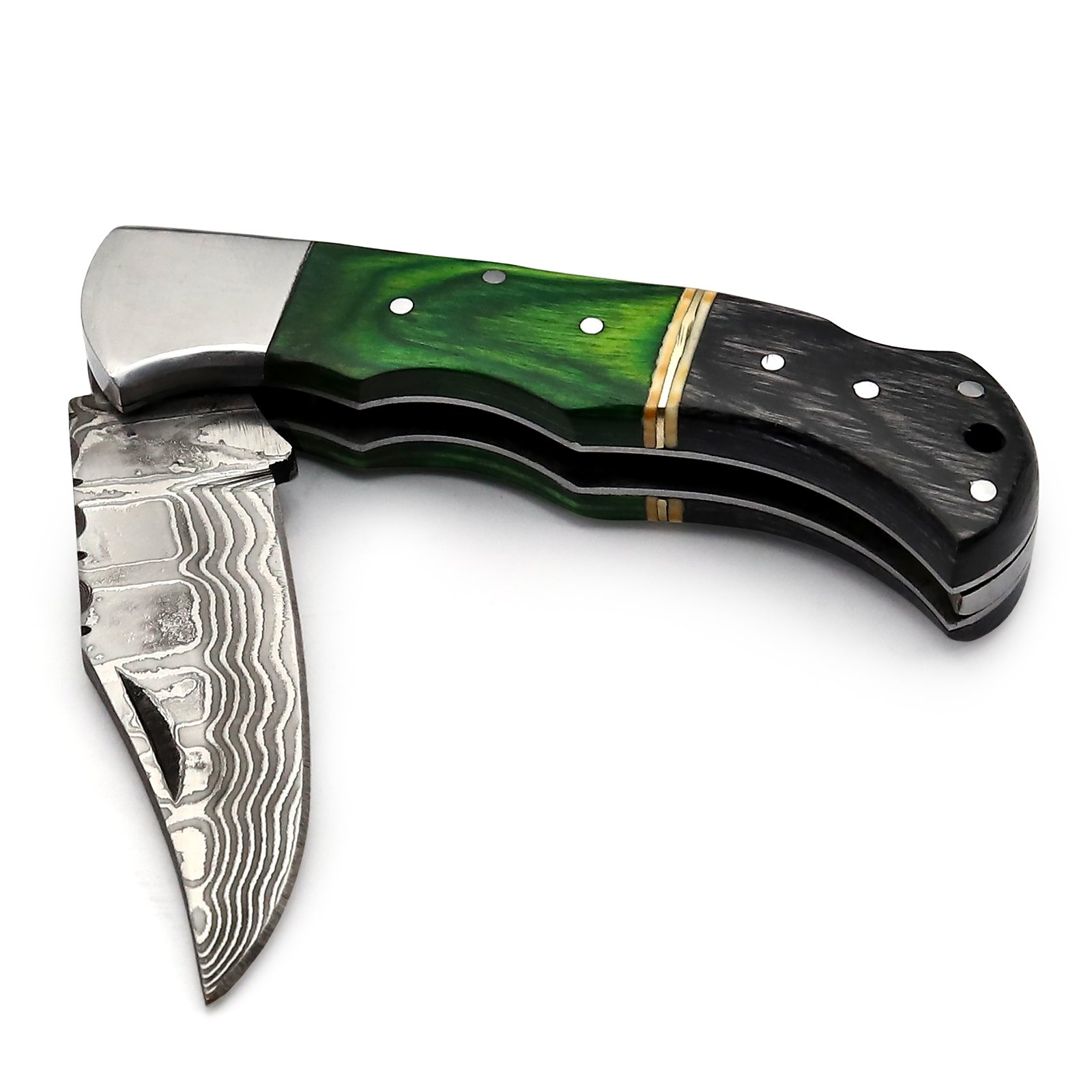 GK-047A Pocket Knife Stainless Steel Damascus, Pekka wood Grey/Green