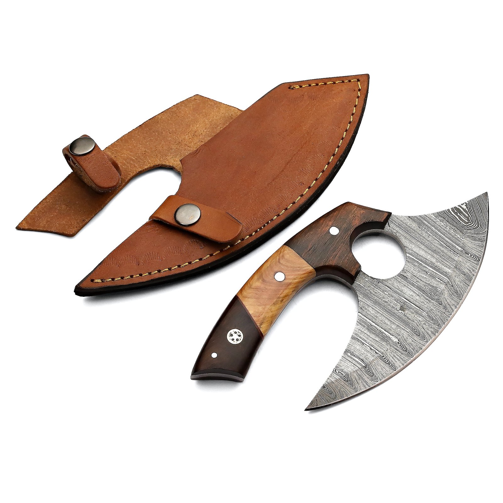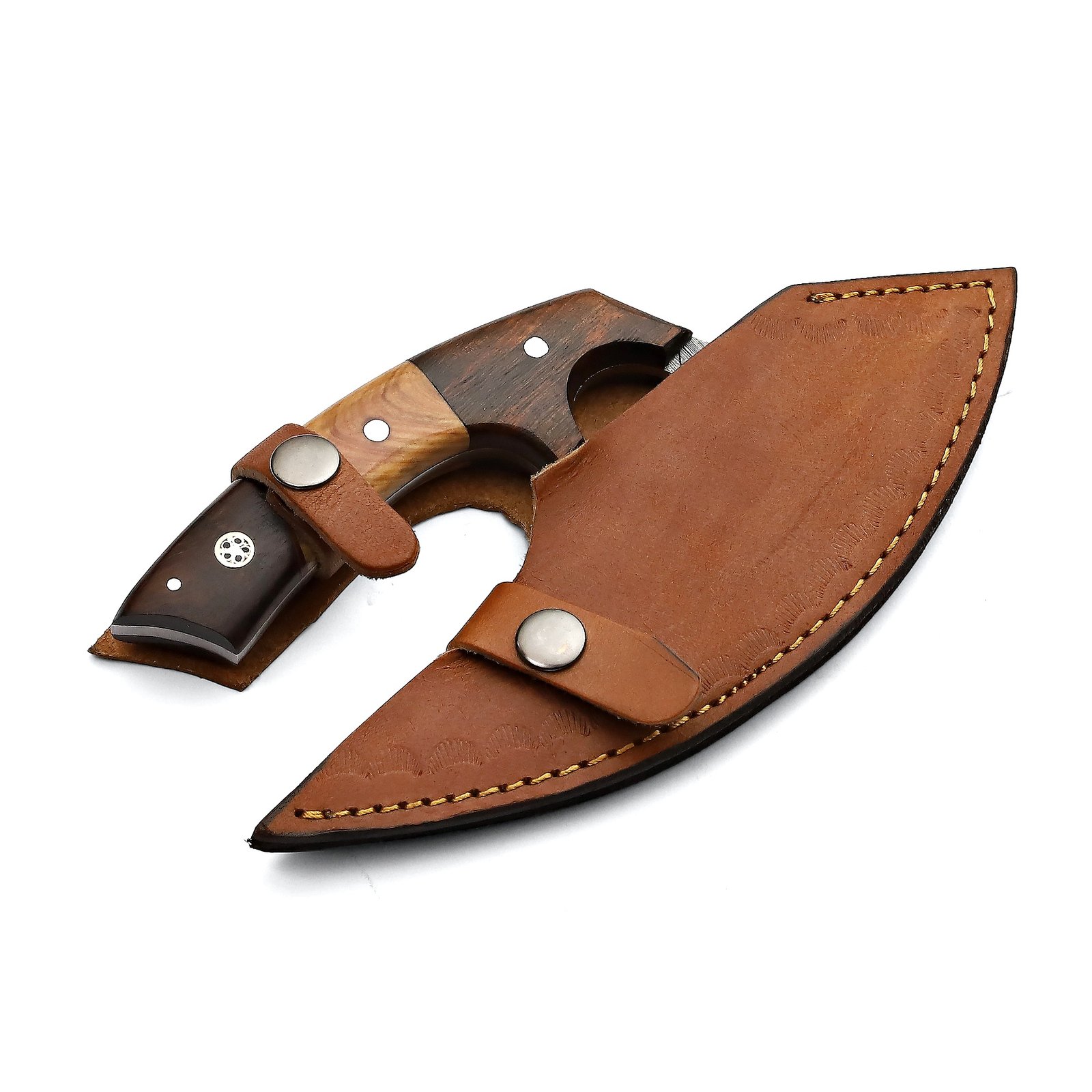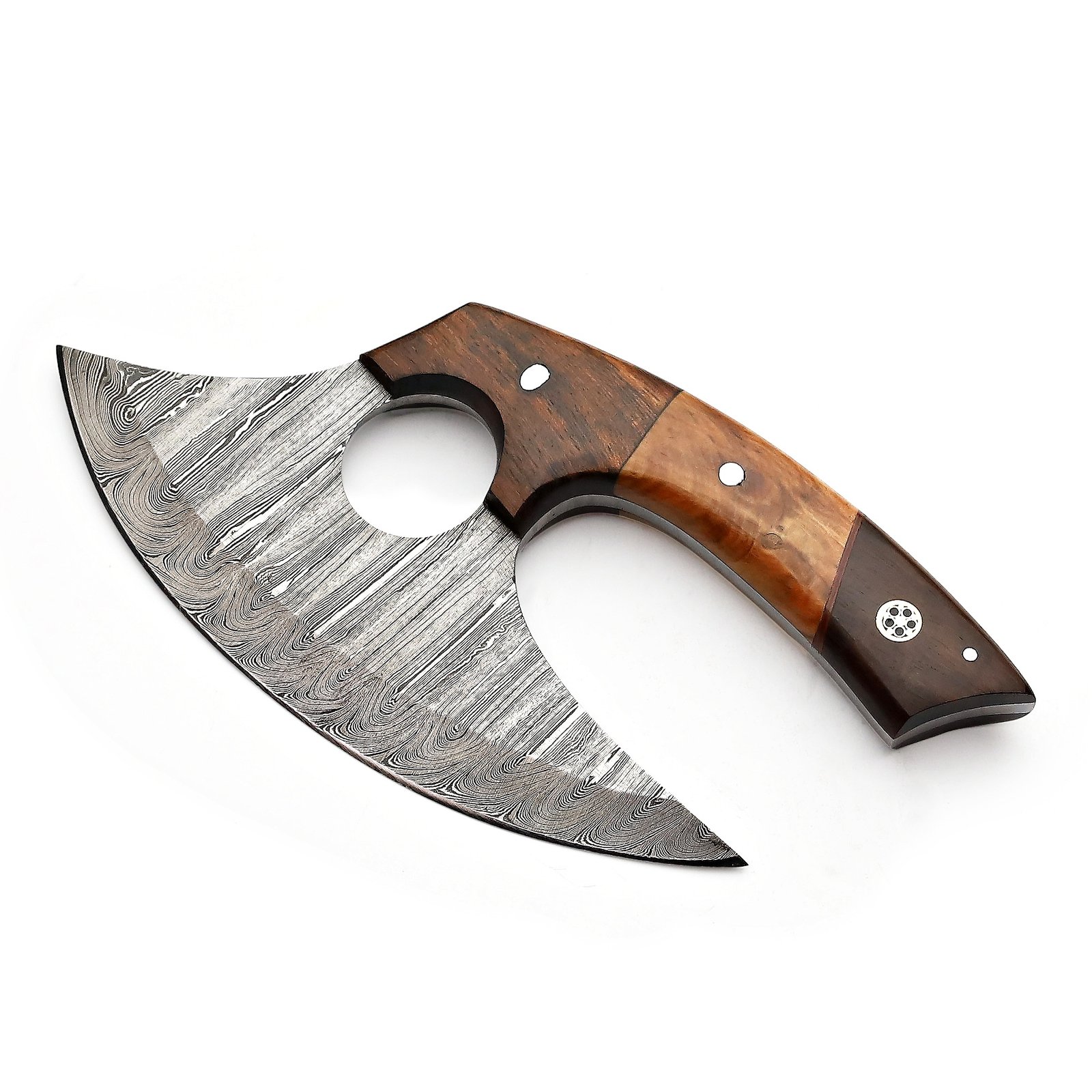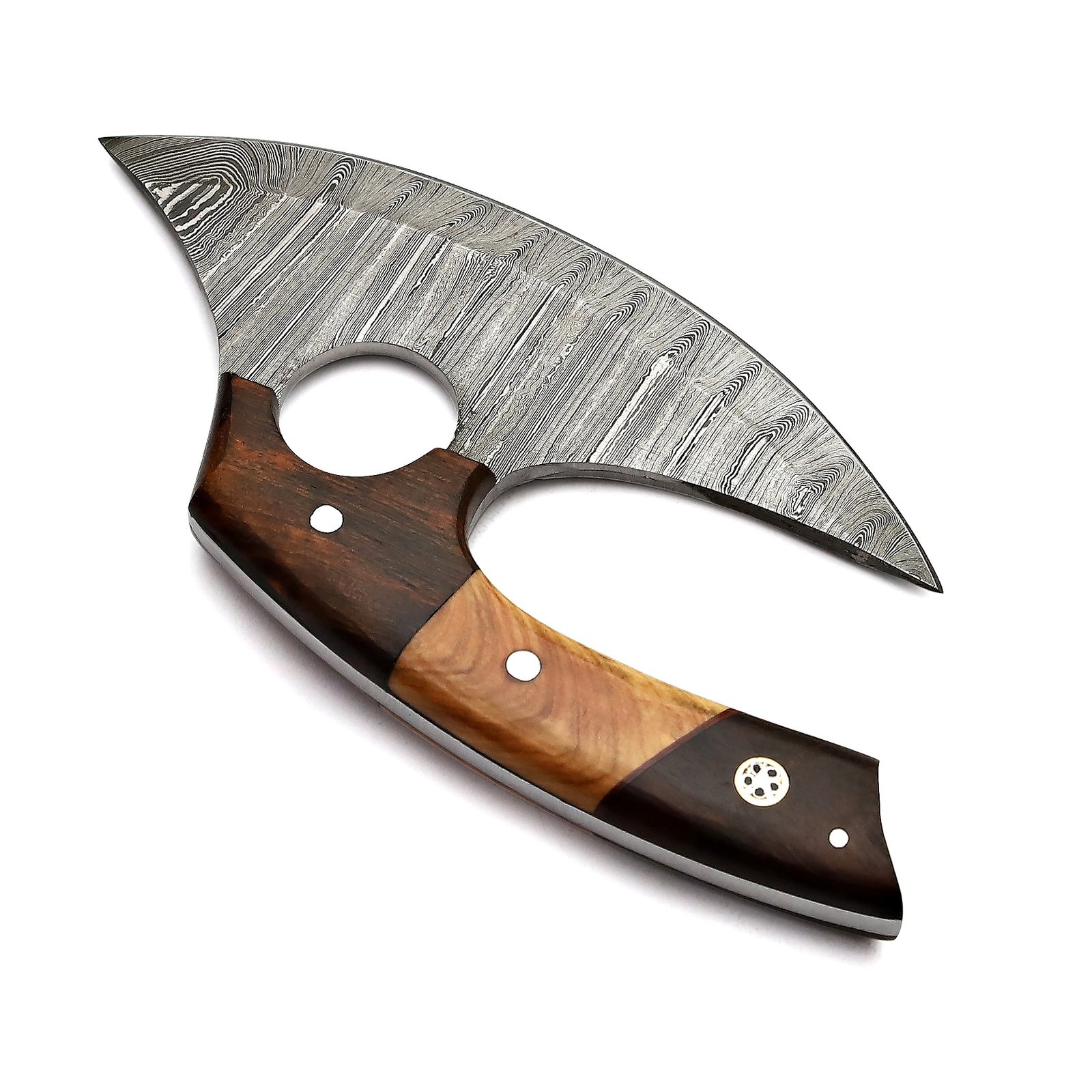 GK-048 Damascus ULU Knife , Pekka wood Grey/Wood