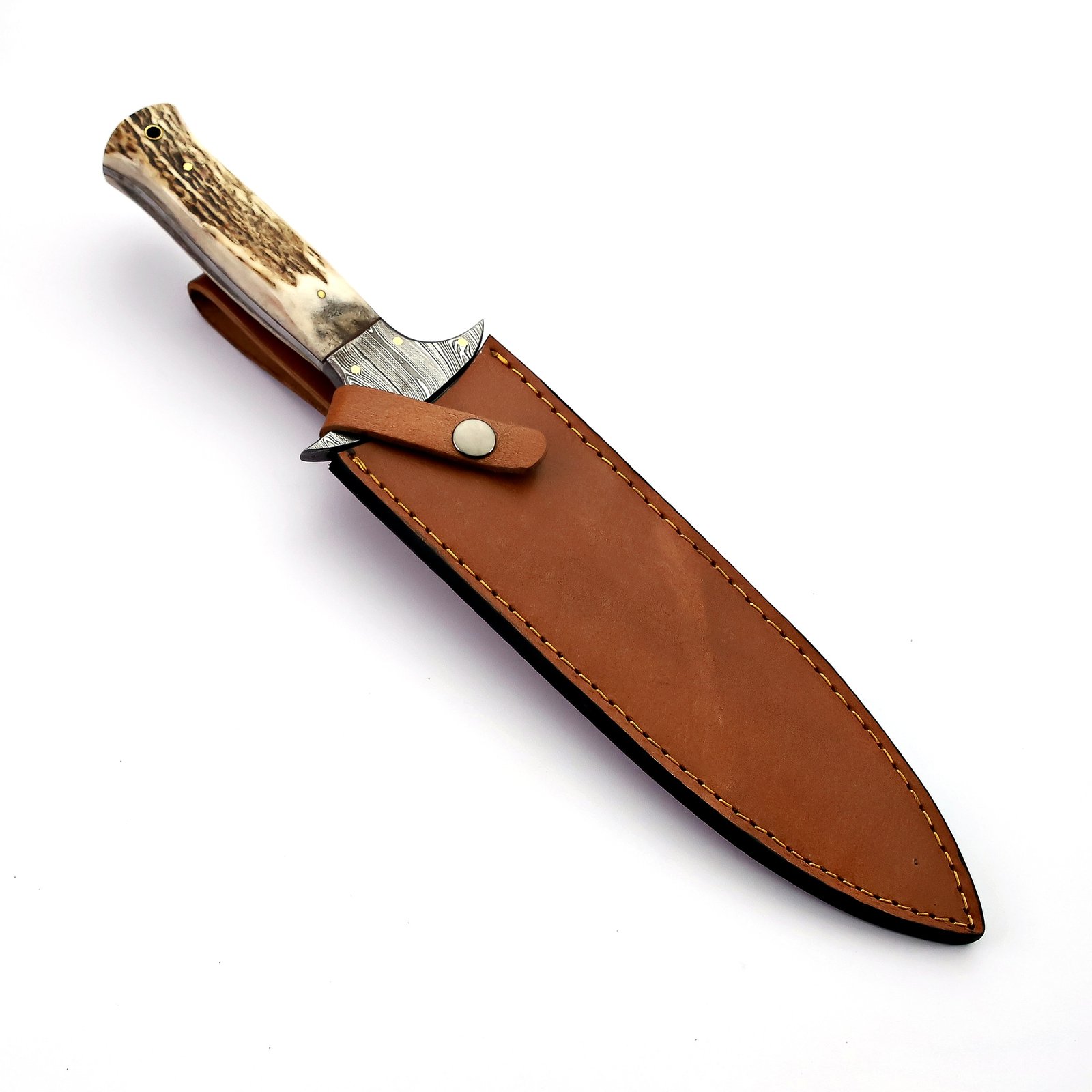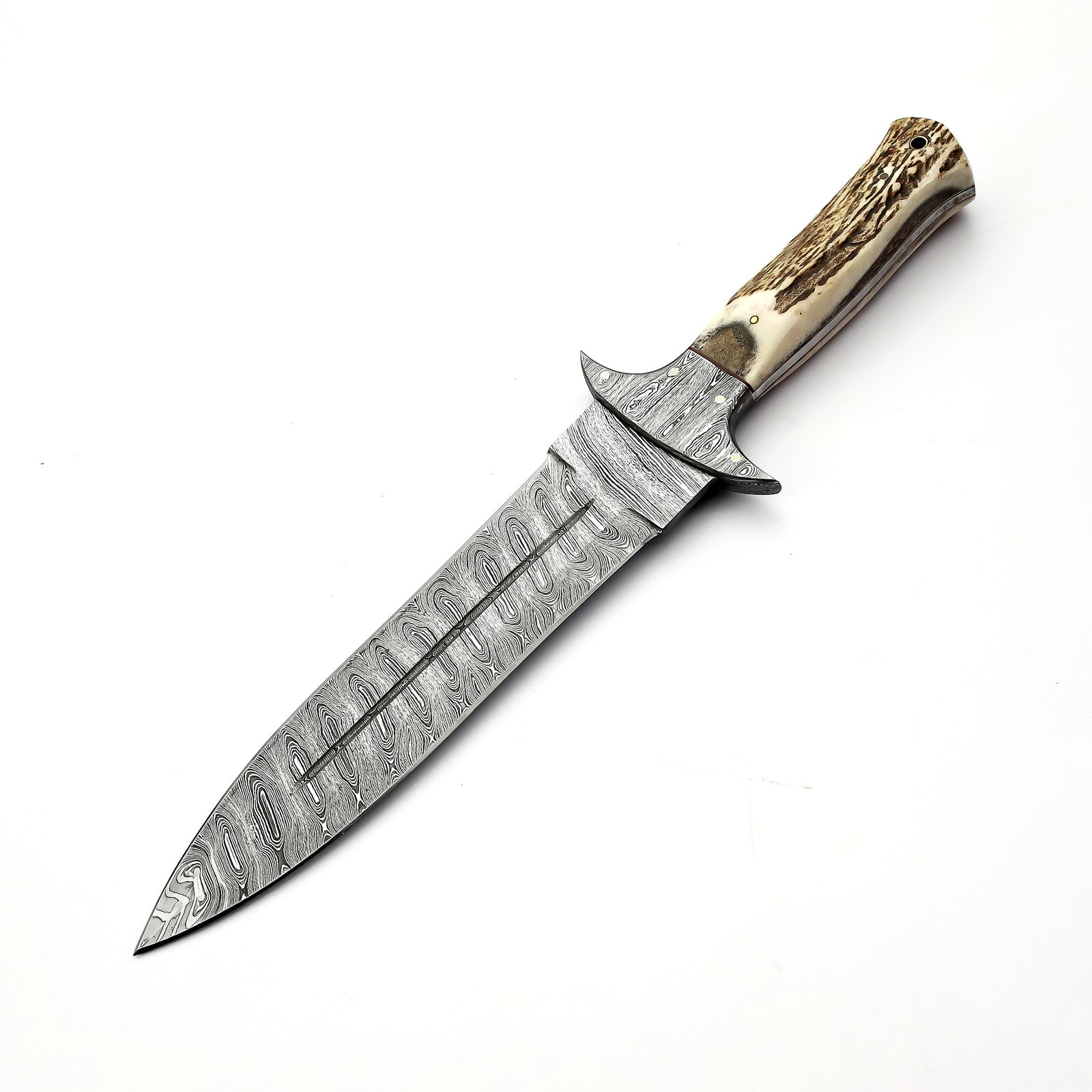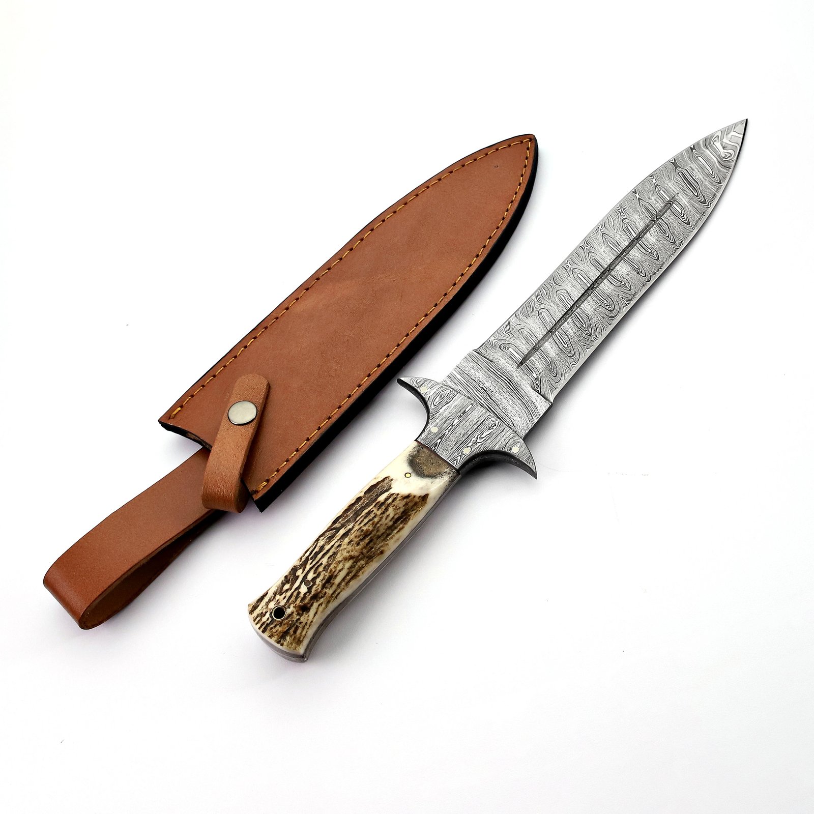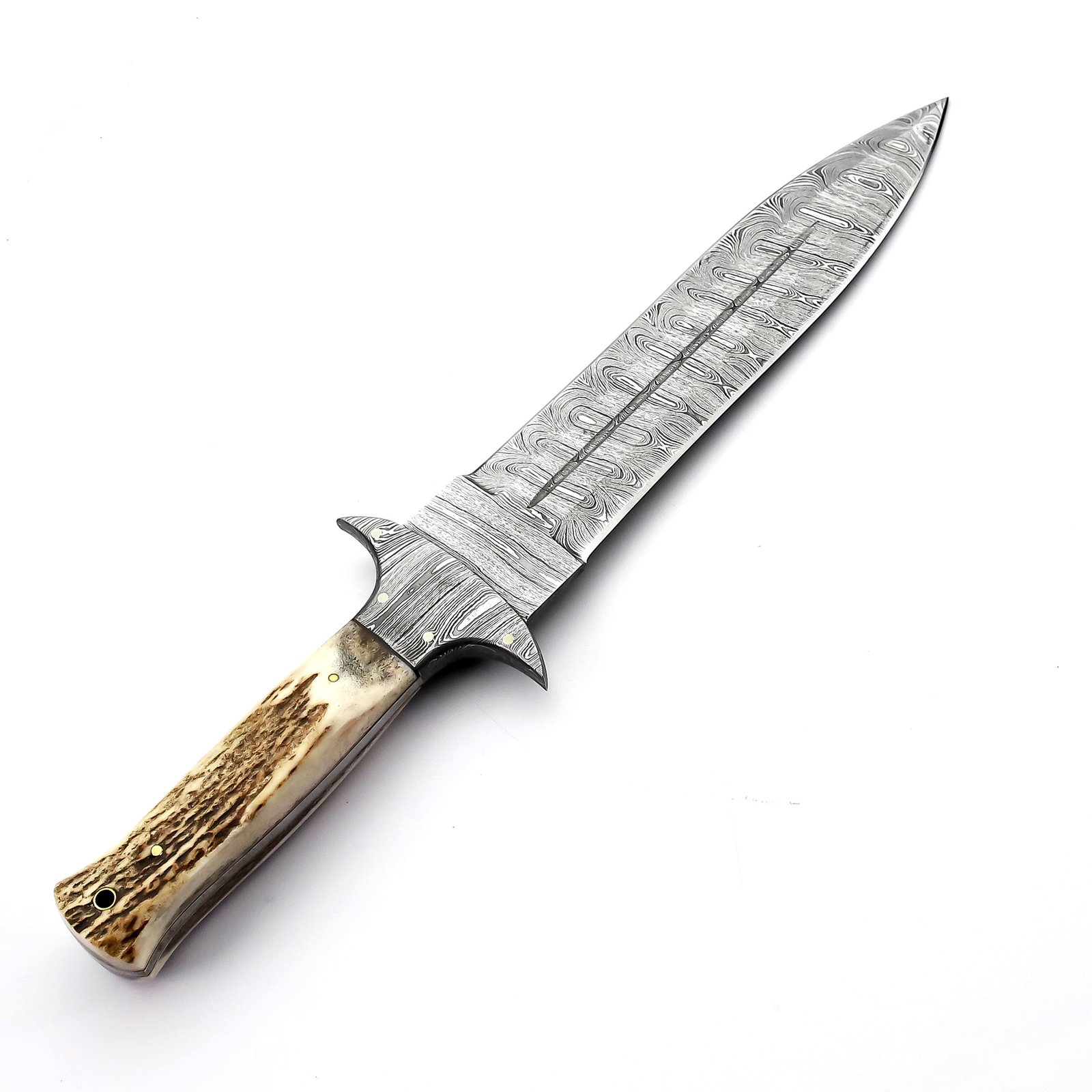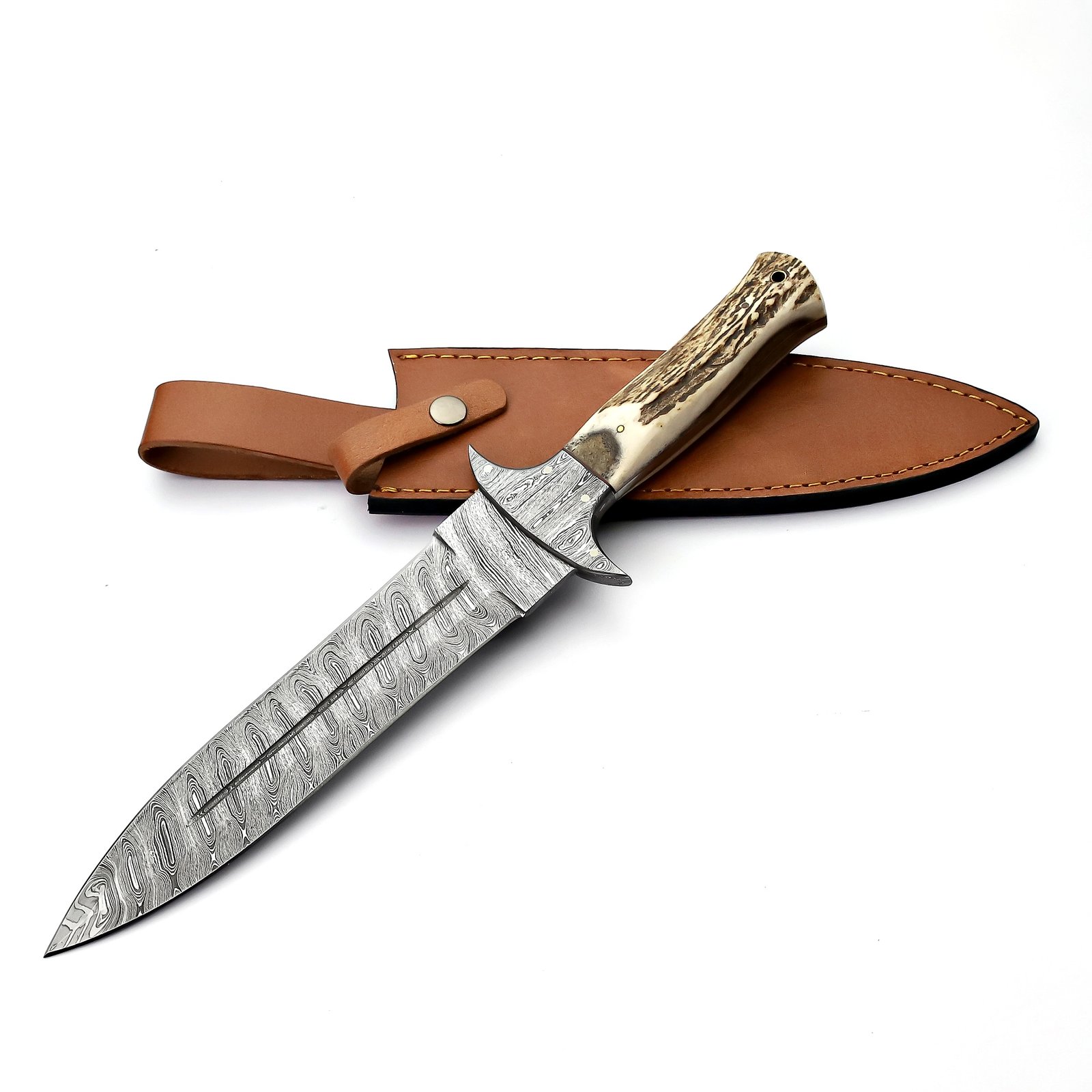 GK-056 Dagger Knife, Damascuss Blade, Stag handle