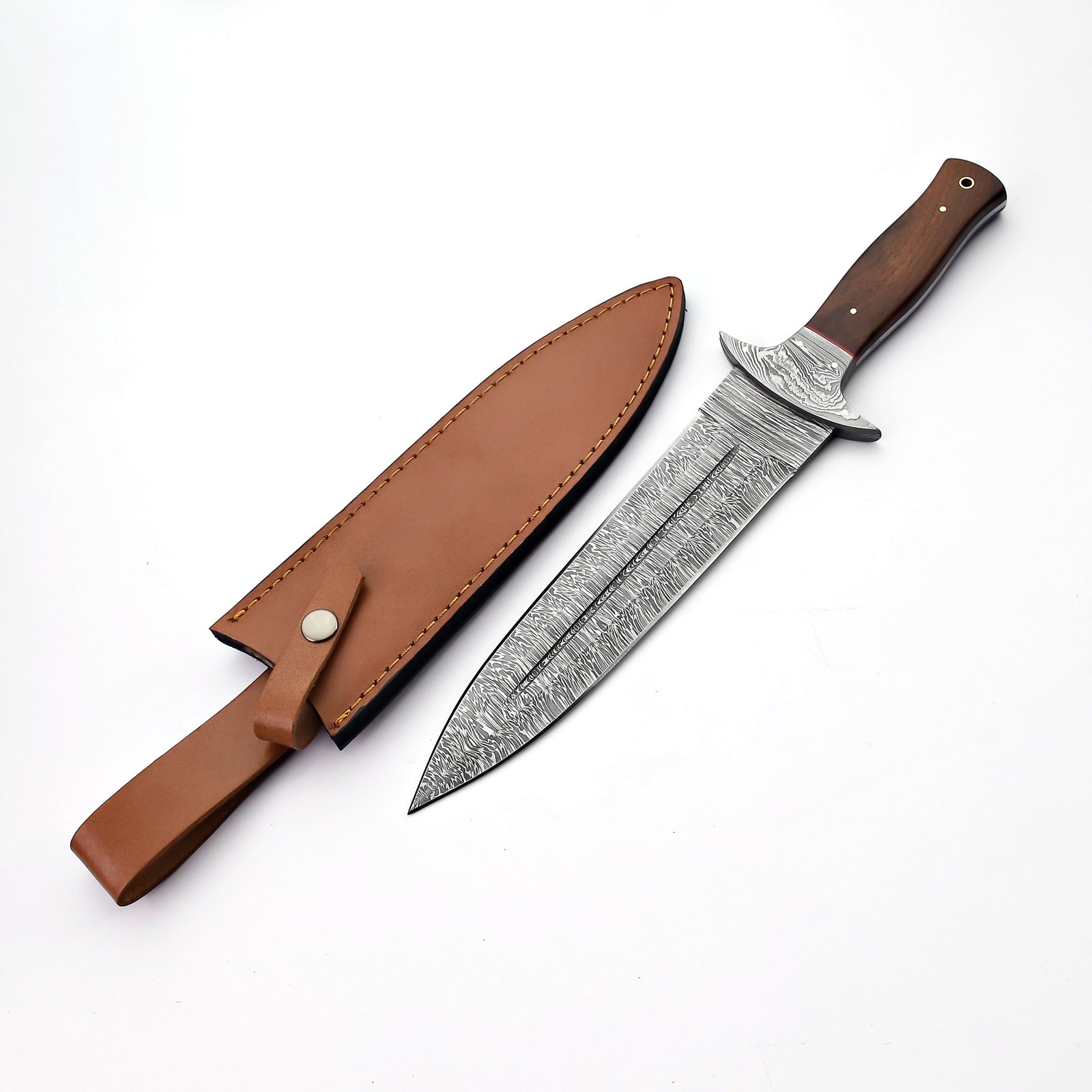 GK-056A Dagger Knife, Damascuss Blade, Wood handle