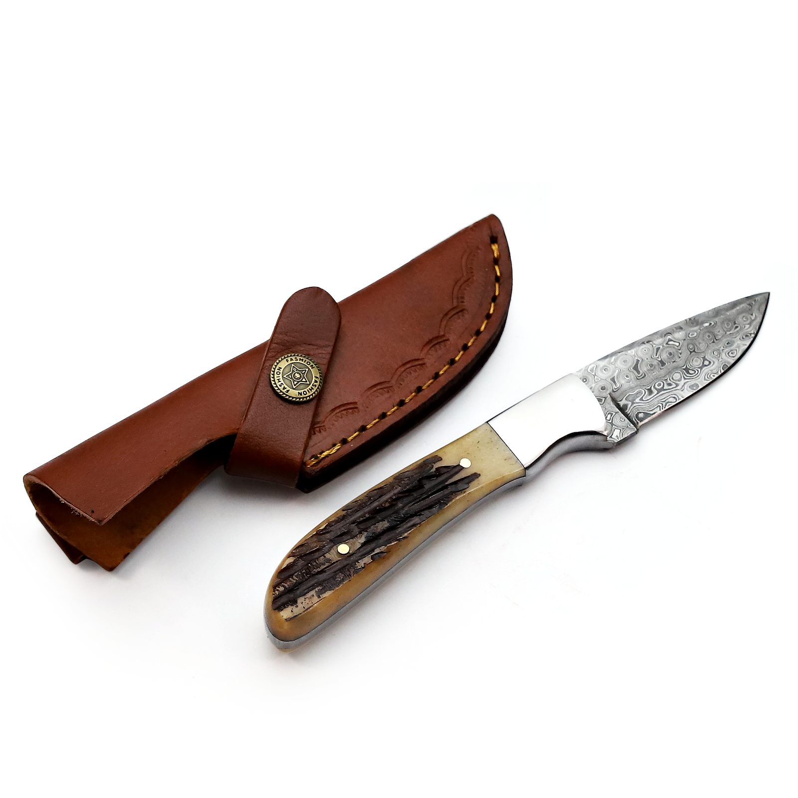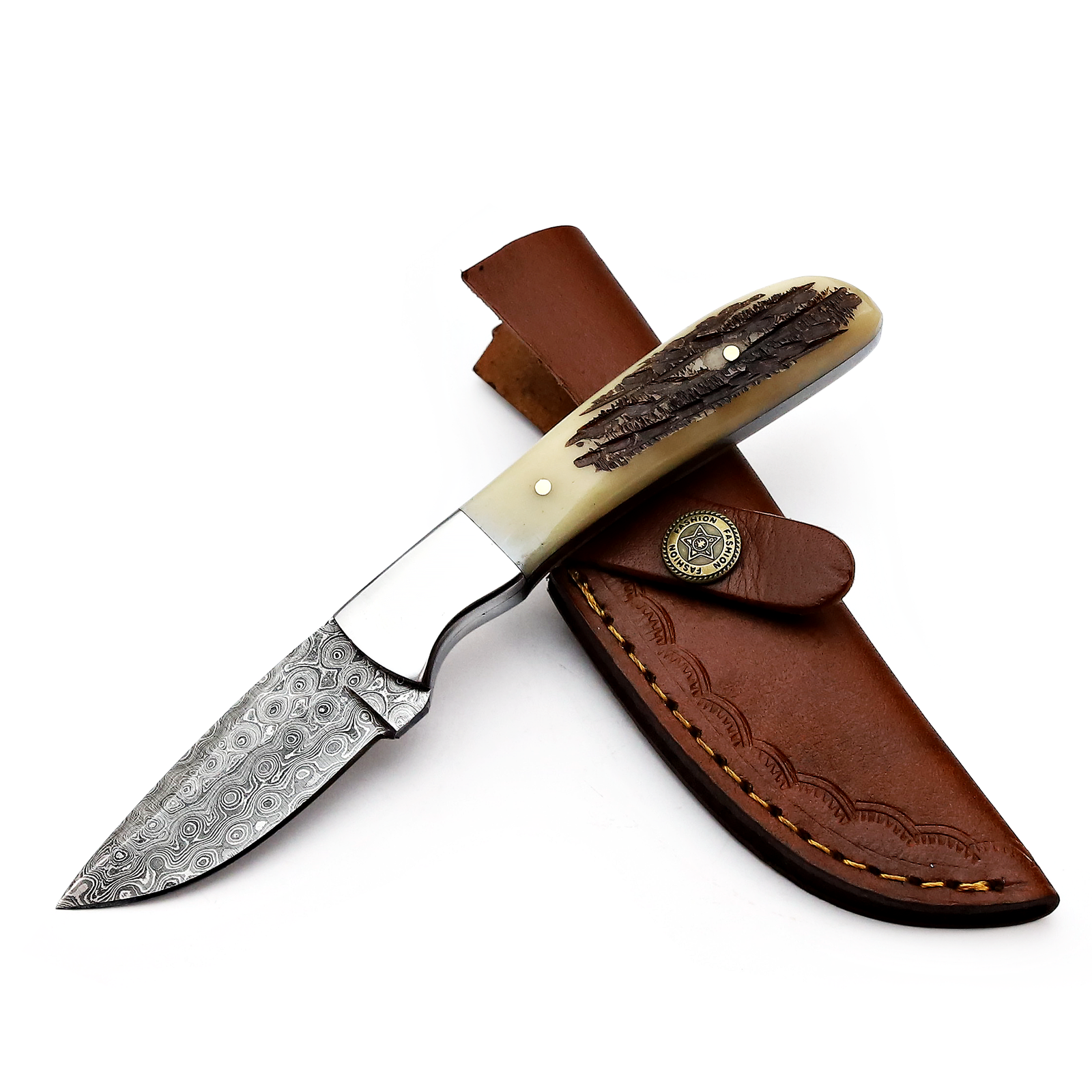 MI-016 Damascuss Blade and Bone Handle with fire work