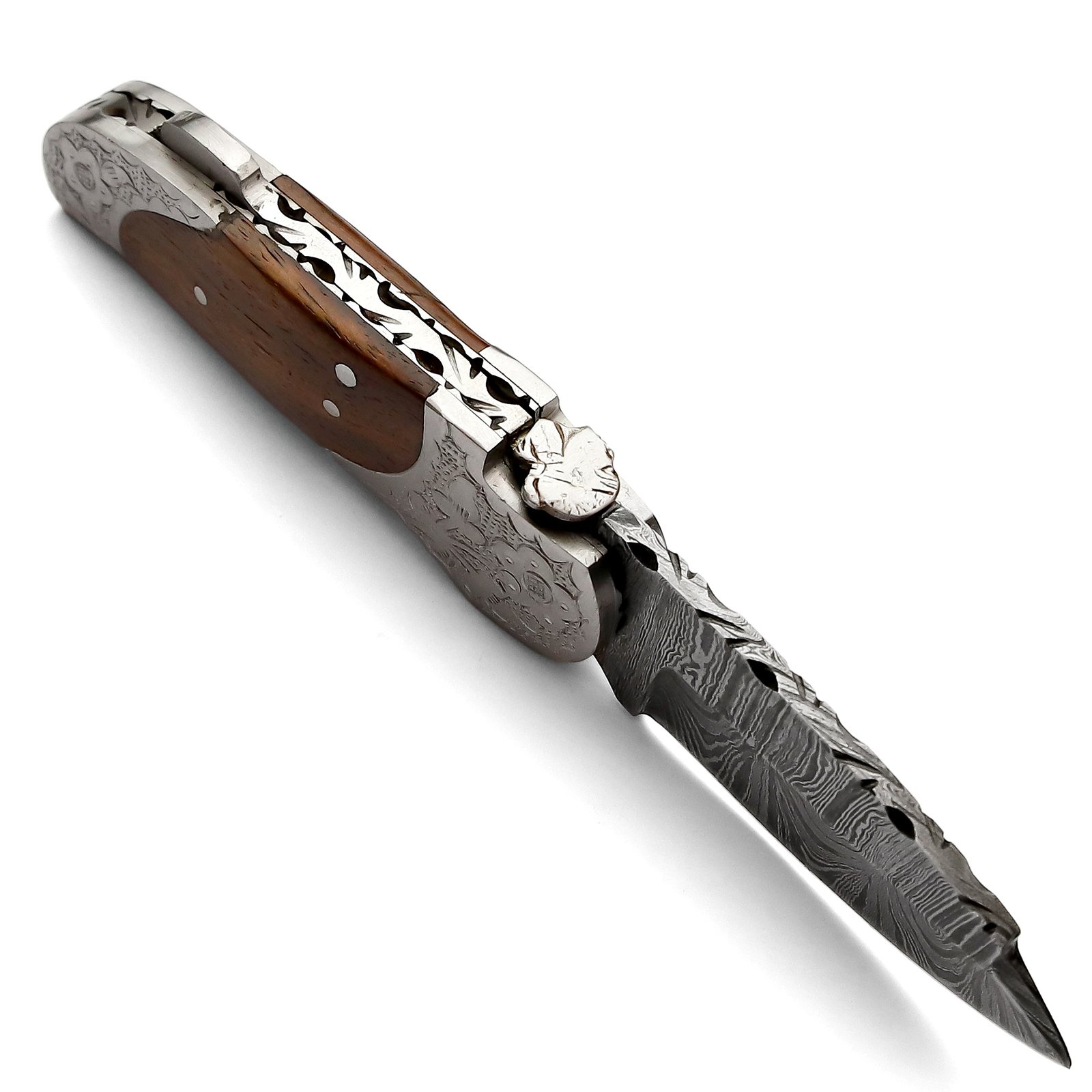 OE-006 Pocket Knife Damascus Blade,Rose Wood Handle