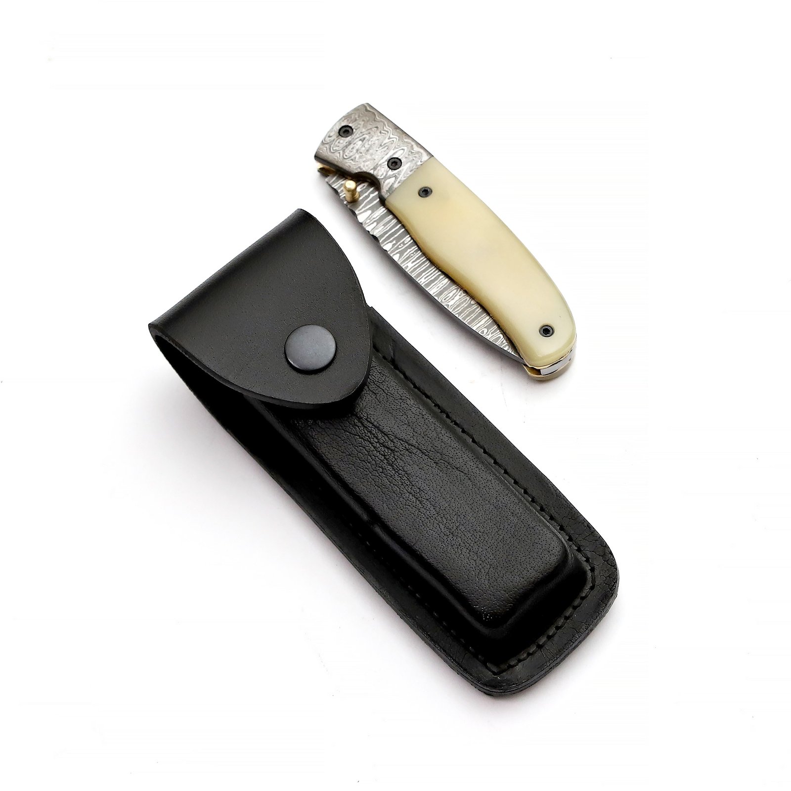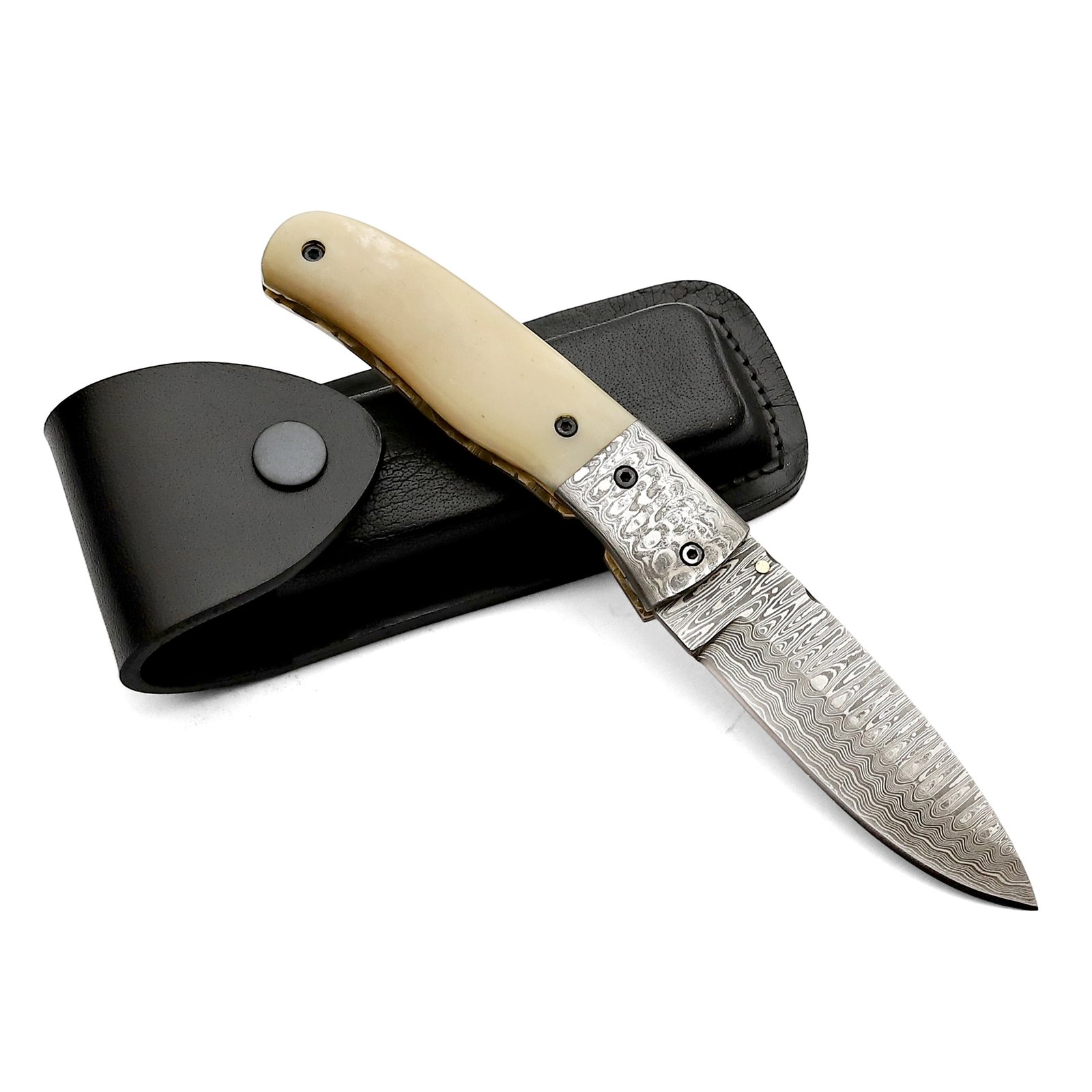 Be the first to review “QAS-008 Damascuss Pocket Knife with Camel Bone Handle”