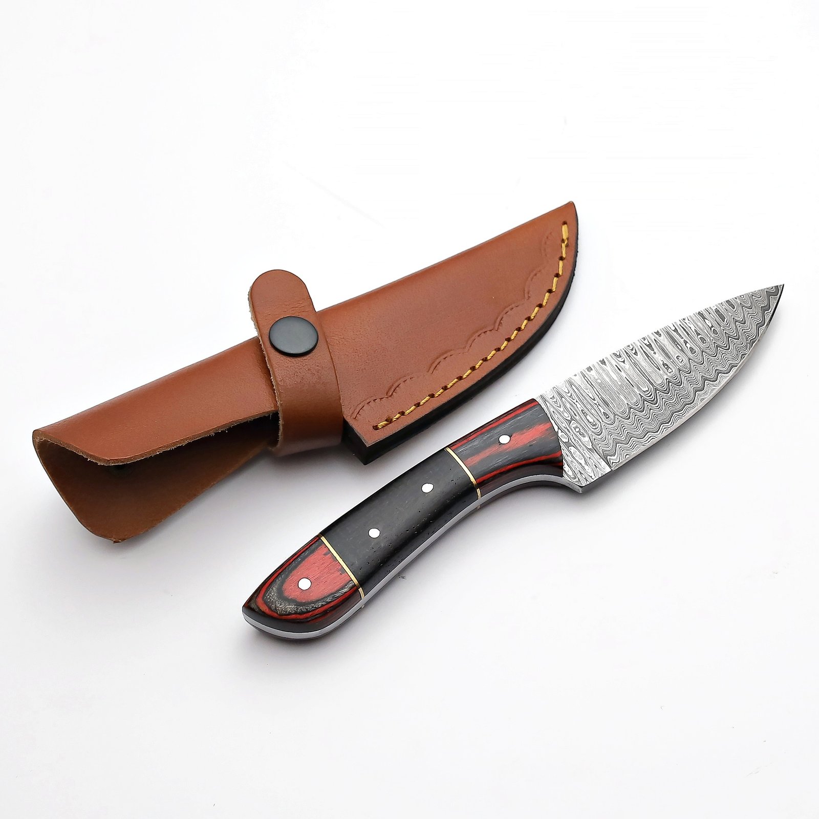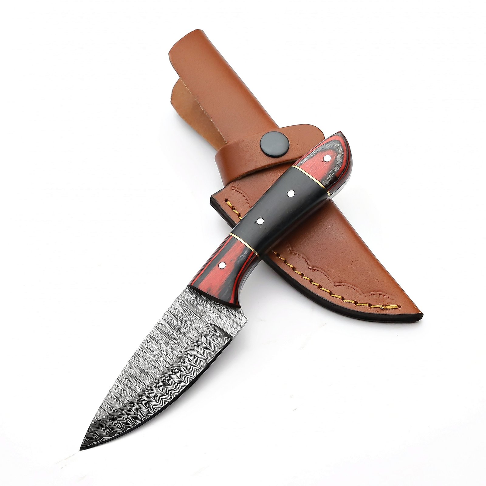 Be the first to review “Sql-002 Damascus Hunting Knife With Black Micarta and Red Pah”