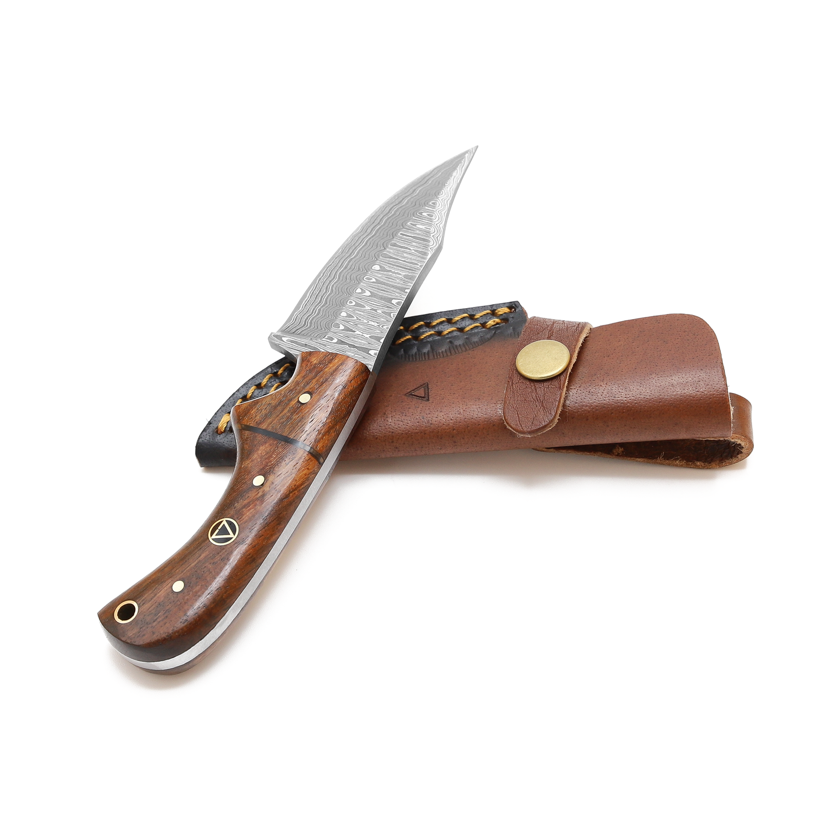 SQL-010 Damascus Hunting Knife with Rose Wood Handle & Sheath