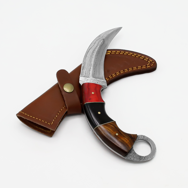SQL-042 Krambit Knife with Sheath Blade Length: 5 Handle Length: 4 Total Length: 9 Damascus Steel: 1095+15N20
